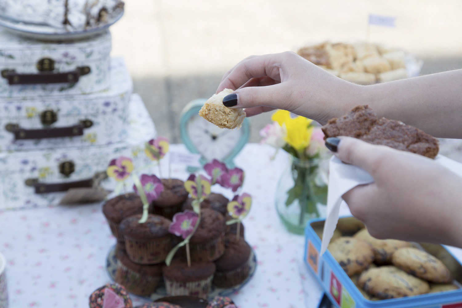 The theme of the cake sale was 'vintage tea party' because at Sass & Belle we adore all thing vintage-inspired! (Although you may have guessed that by now). Inspired by Alice in Wonderland, we used trinkets and finery to create a magical look. Victoria, Sass & Belle’s Junior Content Editor explains: