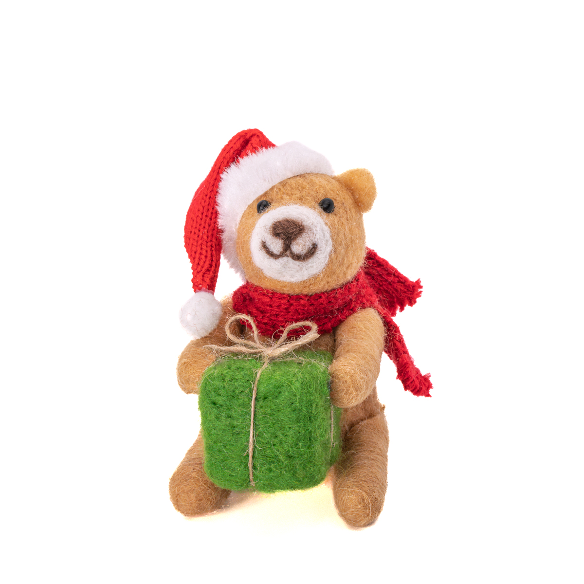 This Bear with Gift Felt Decoration is perfect for adding a touch of Woodland charm to your tree. With its gentle expression and festive gift, this bear ornament brings joy to your holiday display.