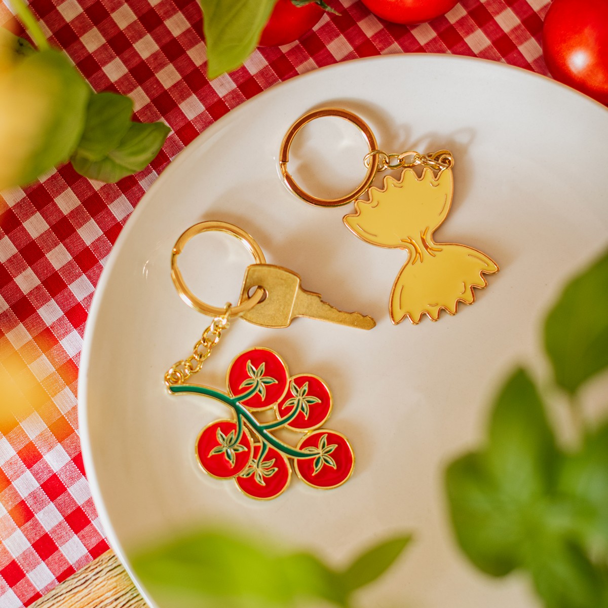 The Tomato Enamel Keyring adds a bold splash of red to your keys, perfect for fans of fresh produce and bright accessories.